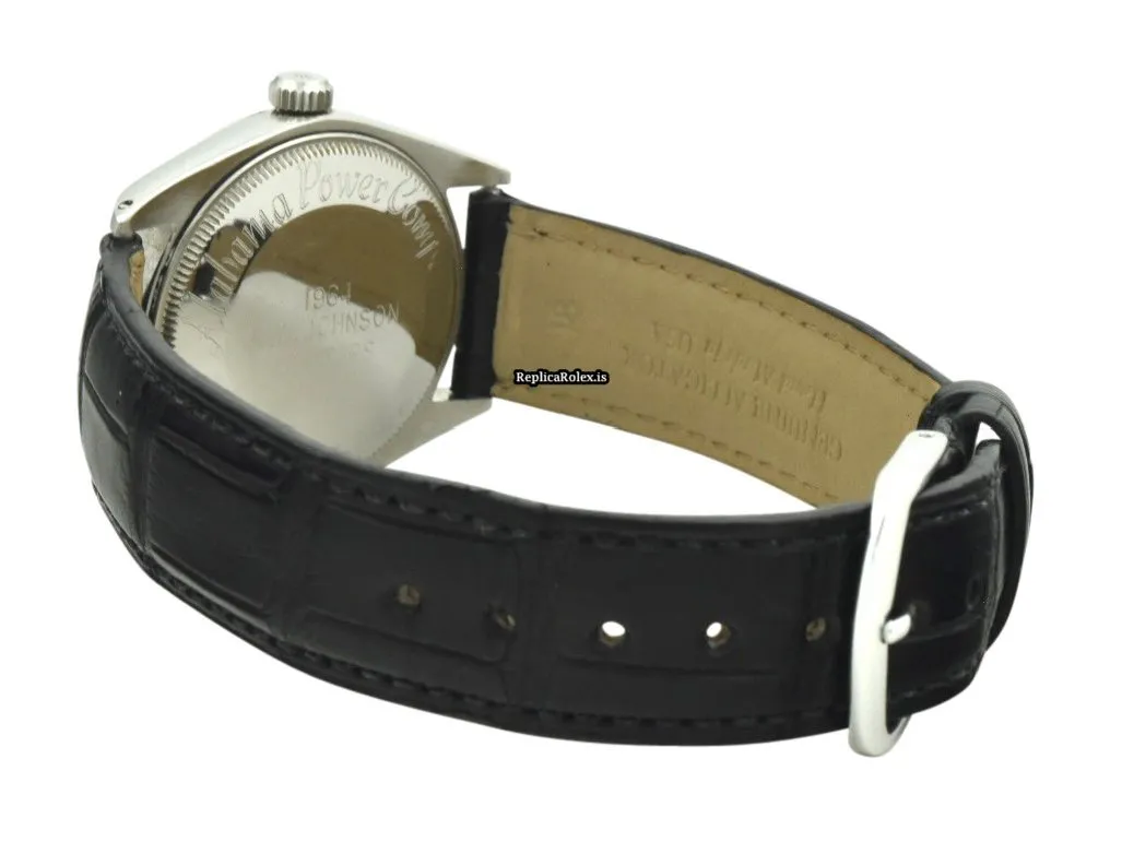 Tags: 26 jewels, 34mm case diameter, 5552, automatic movement, black bracelet color, buckle clasp, caliber 1530, leather bracelet material, mens watches, no numerals, plexiglass crystal, silver dial, steel bezel material, steel case material, steel clasp material, unisex watches