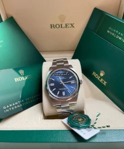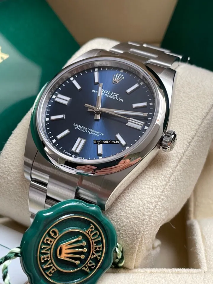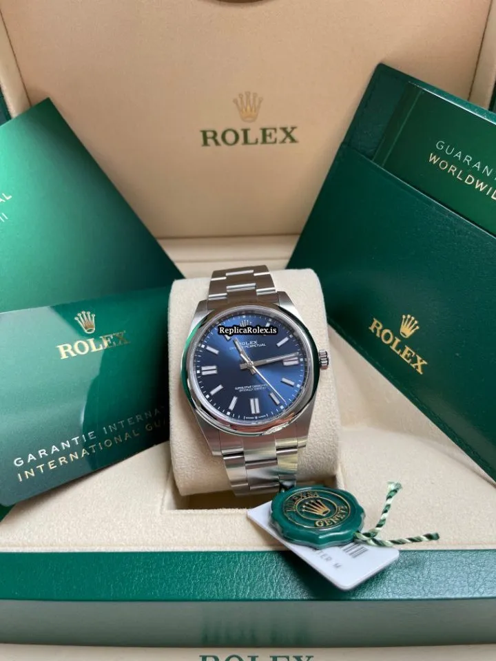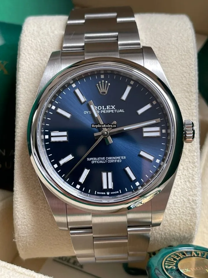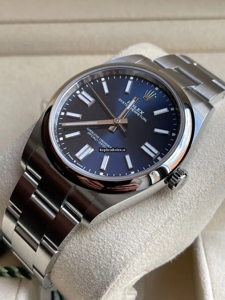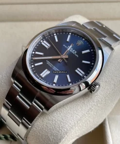 Tags: 10m atm, 124300, 31 jewels, 41mm case diameter, 70h power reserve, automatic movement, blue dial, caliber 3135, caliber 3230, double-fold clasp, mens watches, no numerals, sapphire crystal, steel bezel material, steel bracelet color, steel bracelet material, steel case material, steel clasp material, unisex watches