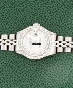 Tags: 13mm lug width, 26mm case diameter, 28 jewels, 48h power reserve, 6917, automatic movement, caliber 2030, fold clasp, mother of pearl dial, sapphire crystal, steel bracelet color, steel bracelet material, steel case material, steel clasp material, white gold bezel material, womens watches
