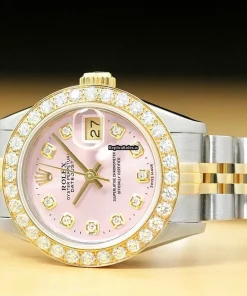 Tags: 13mm lug width, 165mm bracelet length, 26mm case diameter, 29 jewels, 69173, automatic movement, caliber 2135, gold/steel bracelet color, gold/steel bracelet material, pink dial, sapphire crystal, steel case material, womens watches, yellow gold bezel material