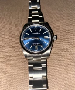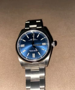 Tags: 10m atm, 124300, 31 jewels, 41mm case diameter, 70h power reserve, automatic movement, blue dial, caliber 3135, caliber 3230, double-fold clasp, mens watches, no numerals, sapphire crystal, steel bezel material, steel bracelet color, steel bracelet material, steel case material, steel clasp material, unisex watches