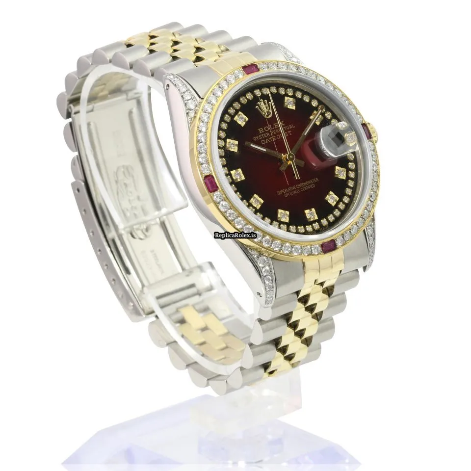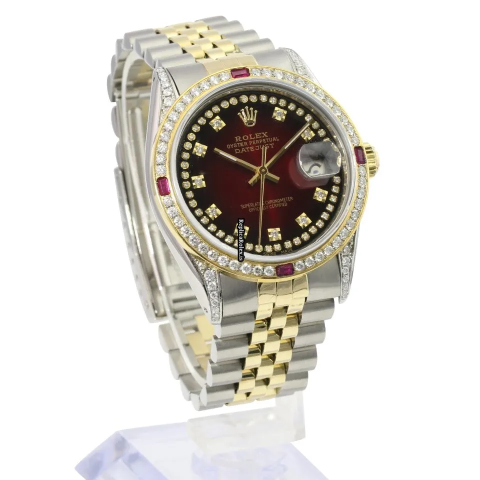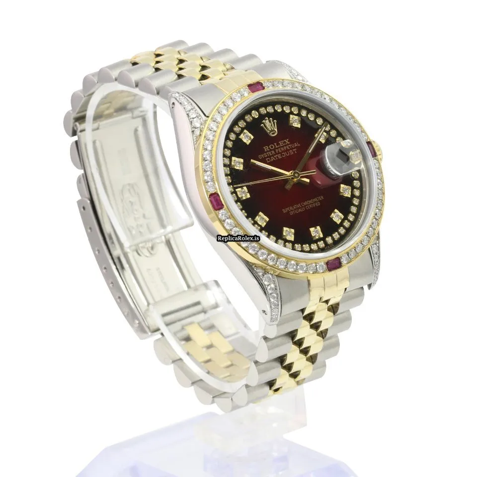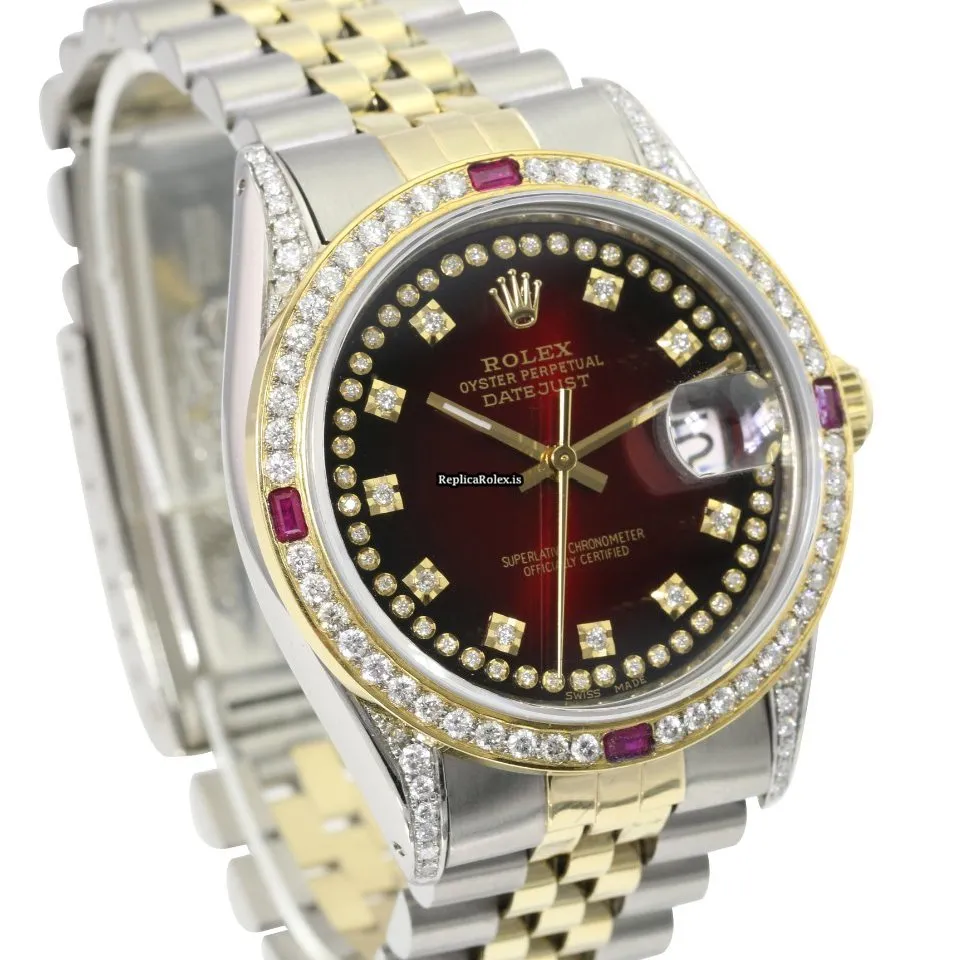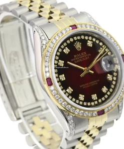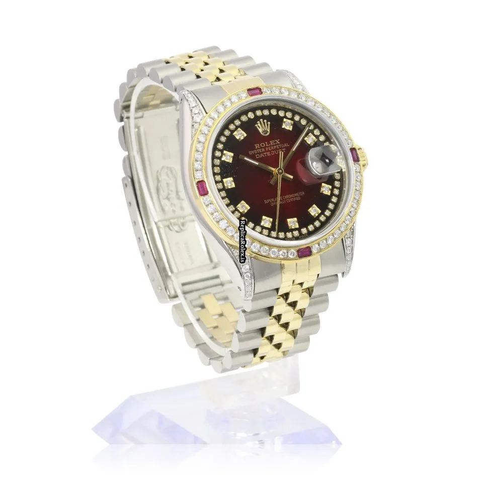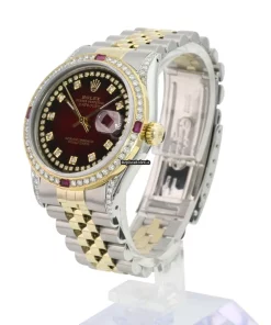 Tags: 10m atm, 16233, 31 jewels, 36mm case diameter, 42h power reserve, automatic movement, caliber 3135, fold clasp, gold/steel bracelet color, gold/steel bracelet material, gold/steel case material, mens watches, red dial, sapphire crystal, steel clasp material, unisex watches, yellow gold bezel material