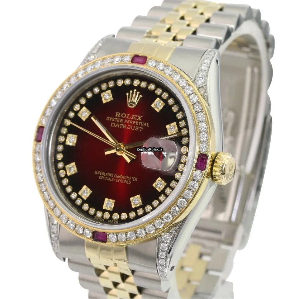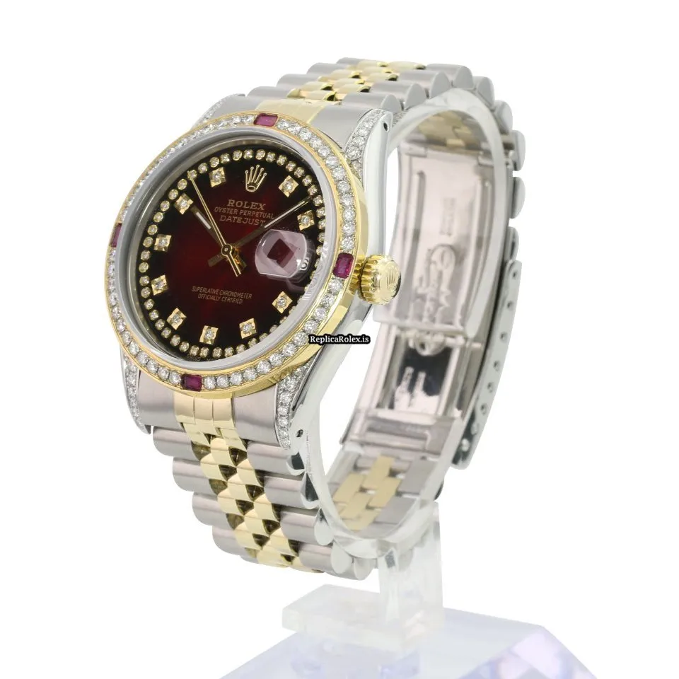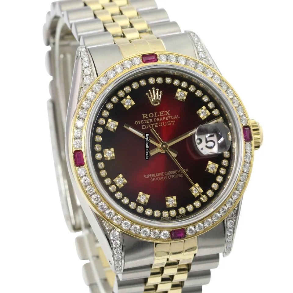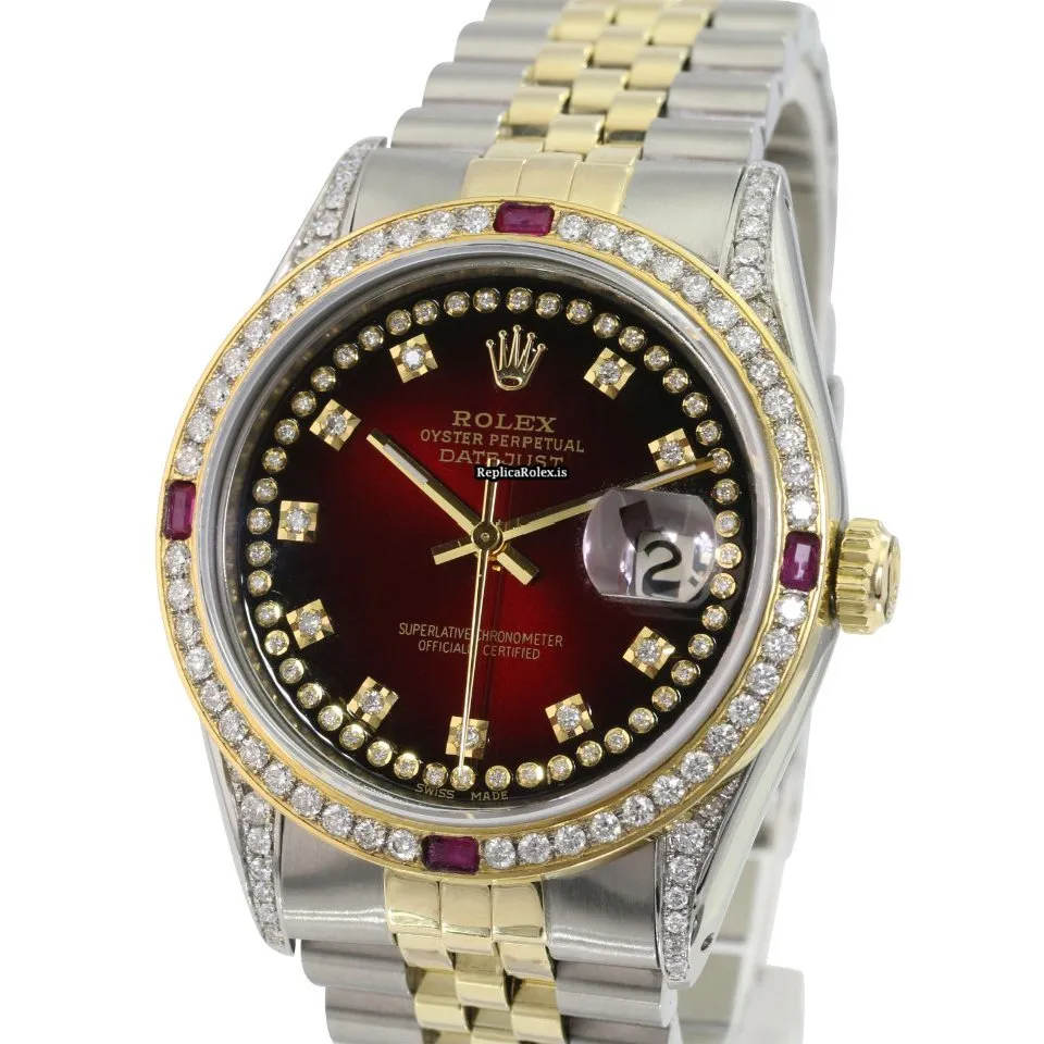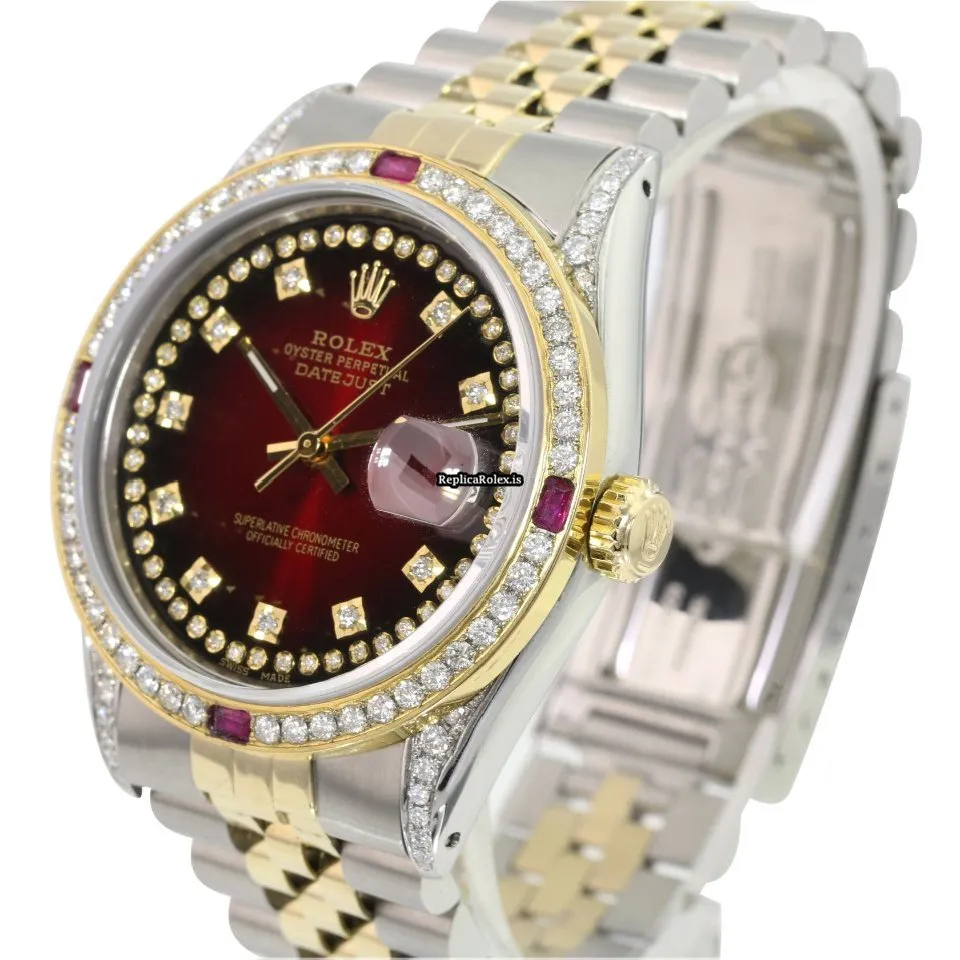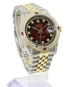 Tags: 10m atm, 16233, 31 jewels, 36mm case diameter, 42h power reserve, automatic movement, caliber 3135, fold clasp, gold/steel bracelet color, gold/steel bracelet material, gold/steel case material, mens watches, red dial, sapphire crystal, steel clasp material, unisex watches, yellow gold bezel material
