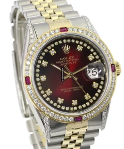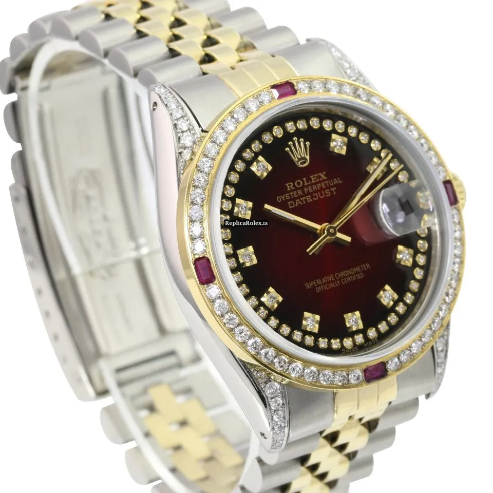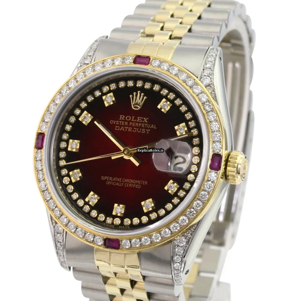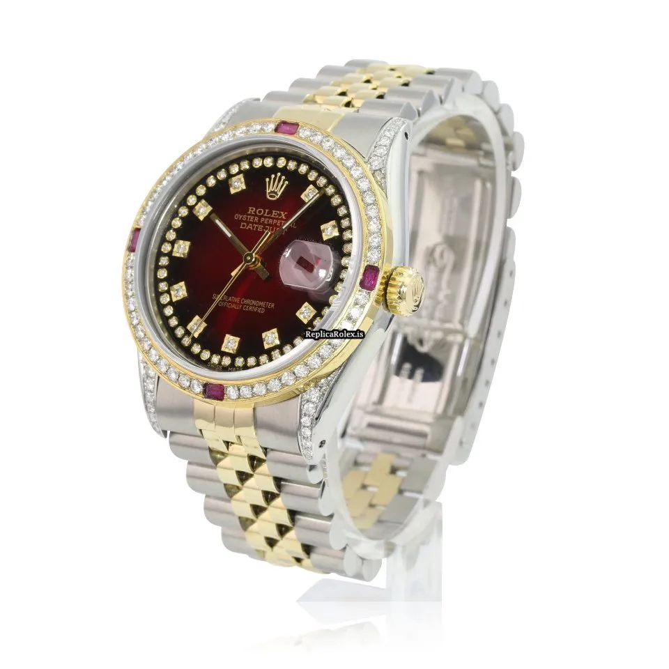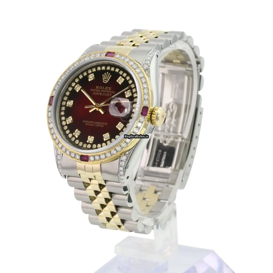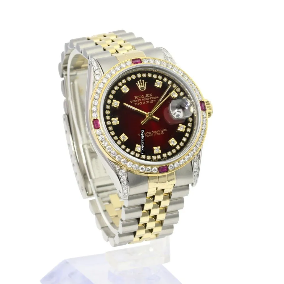 Tags: 10m atm, 16233, 31 jewels, 36mm case diameter, 42h power reserve, automatic movement, caliber 3135, fold clasp, gold/steel bracelet color, gold/steel bracelet material, gold/steel case material, mens watches, red dial, sapphire crystal, steel clasp material, unisex watches, yellow gold bezel material